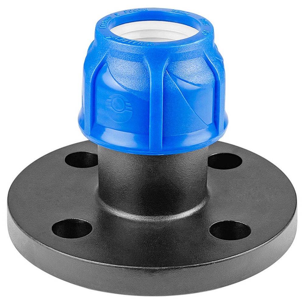 Фланец адаптер пластиковый (фланцевое соединение) — предназначен для присоединения полиэтиленового трубопровода диаметром от 40 до 63 мм к стальному трубопроводу. Такое соединение также позволяет подключить к стальному трубопроводу запорную арматуру фланцевого типа. Диаметры соответствия пластикового фланца для соединения со стальными прижимными плоскими фланцами по ГОСТ 33259-2015. Максимальное давление 16 бар. Материал - полипропилен. В состав соединения не входят металлические составляющие.