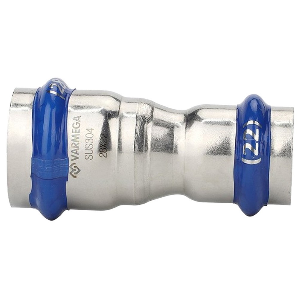 Муфта двухраструбная Varmega Inox Press переходная, используется для соединения труб разных диаметров. Для получения надежного неразъемного соединения трубы и фитинга потребуется специальный пресс-инструмент с насадками типа профиль «V».
