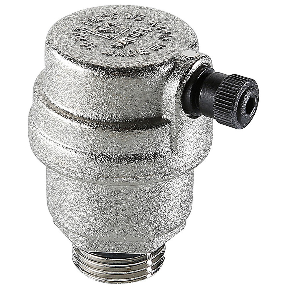 (VT.502.NH) Автоматический воздухоотводчик поплавкового типа с пружинным золотником. Может использоваться на трубопроводах, транспортирующих воду, этилен- и пропиленгликолевый незамерзающий теплоноситель, другие жидкости, неагрессивные к материалам изделия. Ремонтопригодный. Детали корпуса воздухоотводчика выполнены из качественной сантехнической латуни, никелированы. Материал уплотняющей прокладки – эластомер EPDM, поплавка – полипропилен, пружины – нержавеющая сталь AISI 306, держателя золотника и жиклера – нейлон. Воздухоотводчик допущен к применению в системах с рабочей температурой до 110 °С и давлением до 10 бар.
